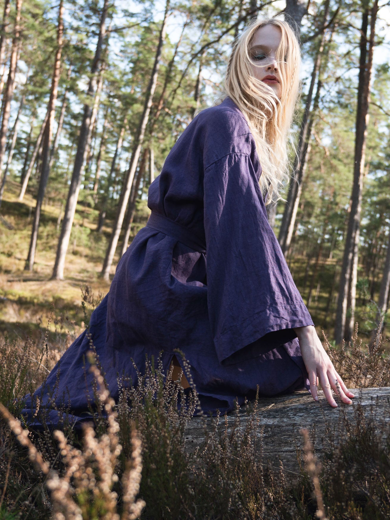 BLUEBERRY ᛟ purple organic linen kimono with splits