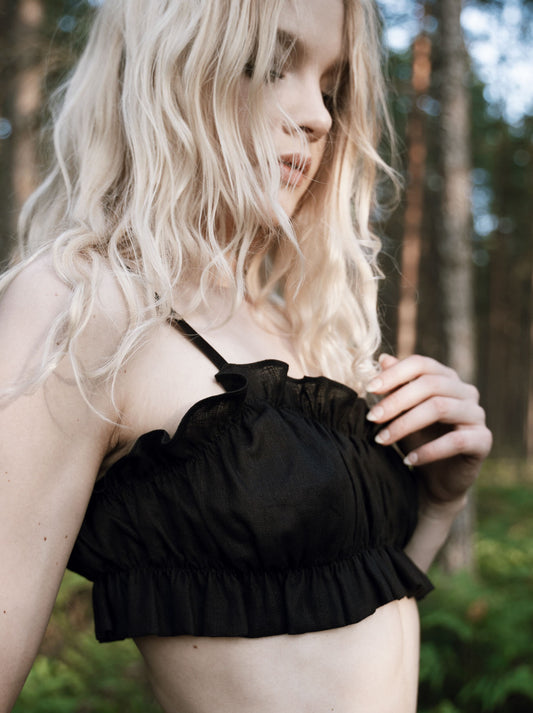 MALLOW ᛝ black organic linen lingerie set